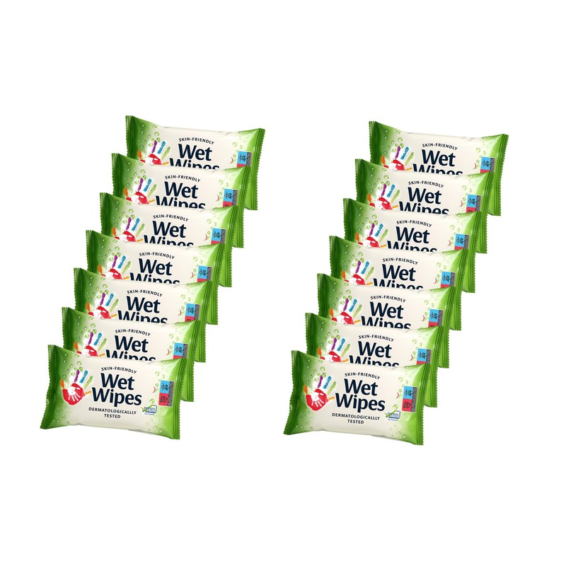 Compact Pocket-Sized Wet Wipes for Skin and Hands, 210 Wipes (14 Pack) – Practical for Bag, Ideal for Travel,School, Office Use