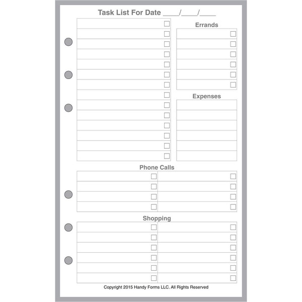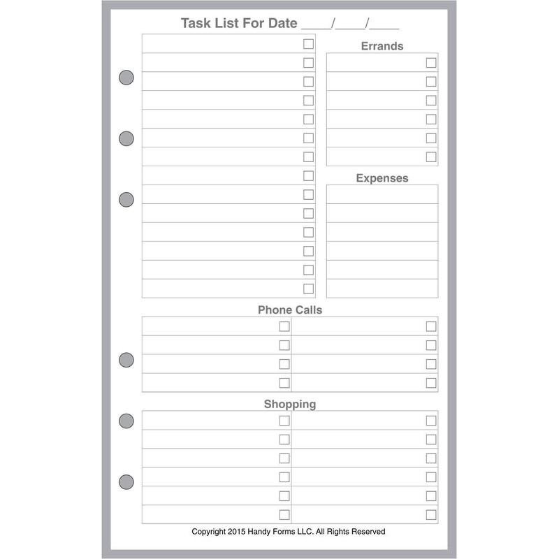 • Daily Task Planner for the Franklin Covey Compact Size notebook, including to-do list, errands, phone calls, shopping and expenses.