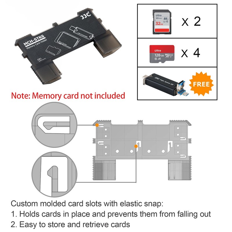 • 【𝐏𝐥𝐮𝐠 𝐈𝐧 𝐃𝐞𝐬𝐢𝐠𝐧】Each slot is strictly tailored with resilient buckle holder to storage the SD card, Micro SD card and Memory Card Reader perfectly and easy to deposit and removal of Cards. And prevents memory cards from dust and loss.