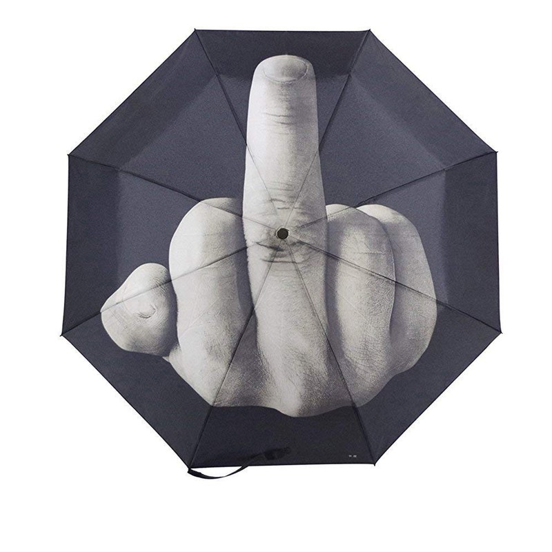 - 🌂UNIQUE DESIGN: This is the middle finger umbrella. You will attract a lot of attention when you use it. Creative and interesting folding umbrella for your life.