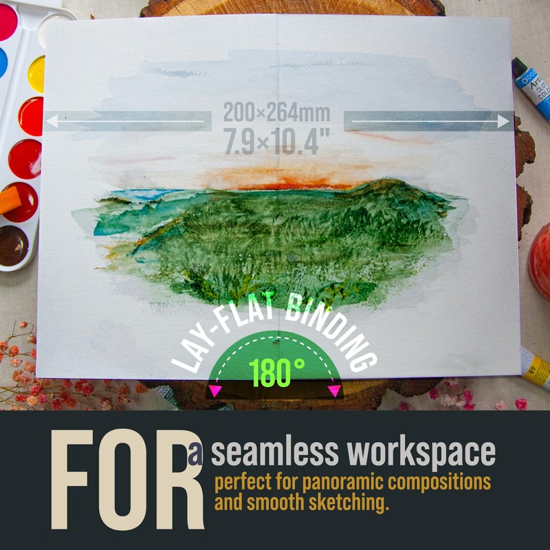 - 📖 Seamless Lay-Flat Binding – Full Spread for Drawing, Painting & Journaling This A5 artist journal lays completely flat, giving you a wide 200×264mm (7.9×10.4") surface for expressive artwork. Perfect for two-page illustrations, sketchbook spreads, or mixed media journaling — whether in the studio or on the go.