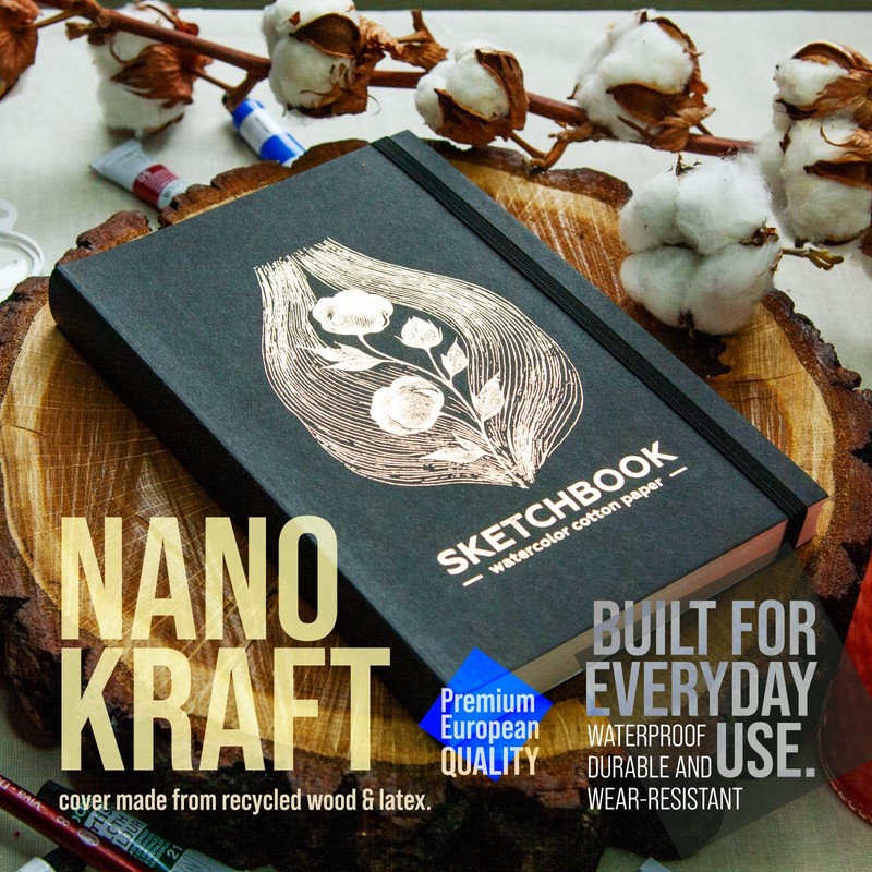 | Material Type: | 100% Cotton Watercolor Paper, Waterproof NanoKraft Cover |