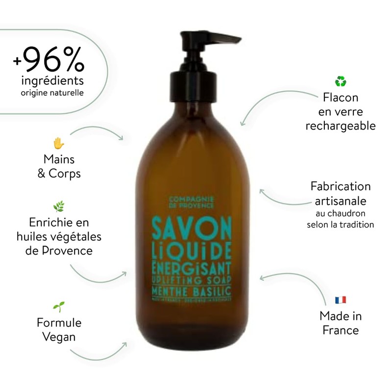 Compagnie de Provence® Liquid Soap Mint Basil 495 ml | Strengthening, Stimulating and Energising | Sulphate-Free