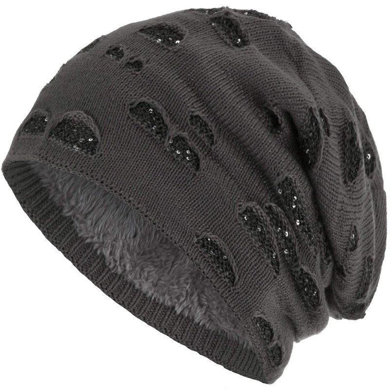 Compagno Women's Winter Hat with Sequins Warm Lined Beanie Knitted Hat Cap One Size -