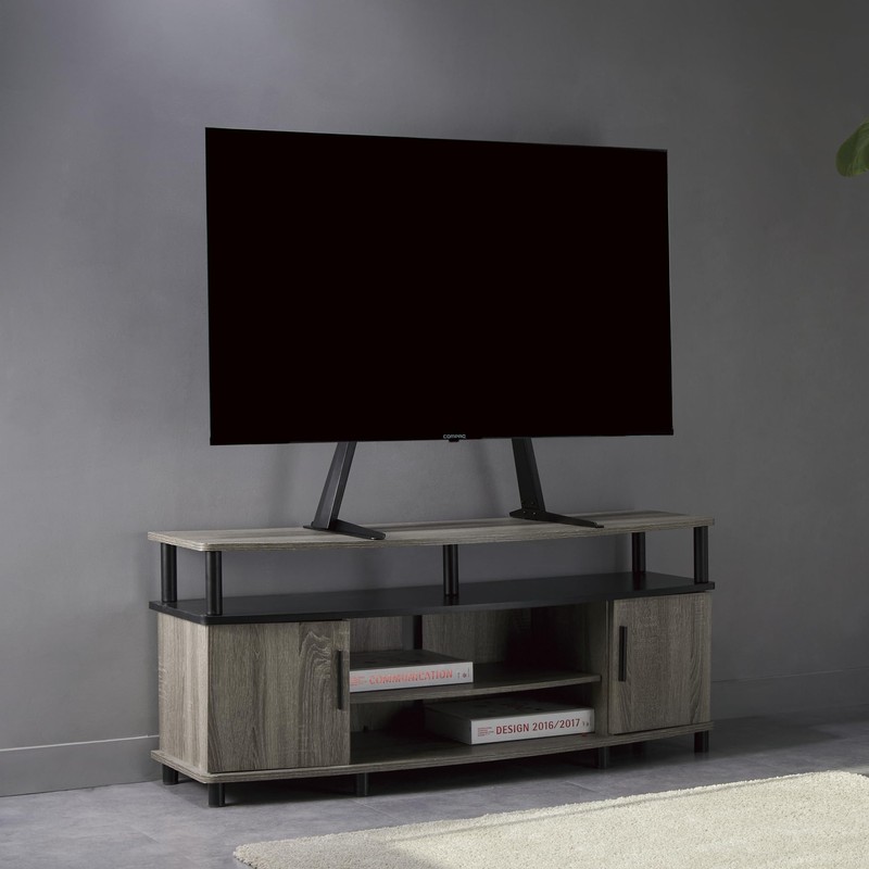 - Slim and Strong Tabletop TV Stand: With a slim design and strong steel structure, COMPAQ's minimalist supports most 32""-70"" flat panel TVs up to 50kg/110lbs while taking up little surface space. It's a great universal tabletop TV stand for bedroom, the living room, desks, and dressers.