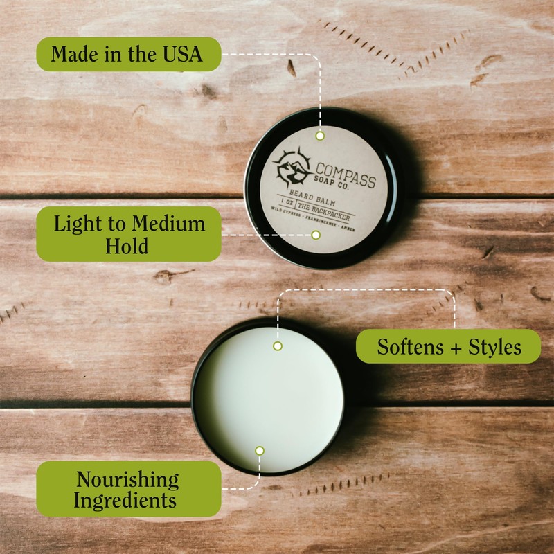Compass Soap - The Backpacker | Unscented Beard Balm for Men | Best Beard Softener for Men with Nourishing Oils, for Healthier & Fuller Facial Hair Growth, 1 oz.