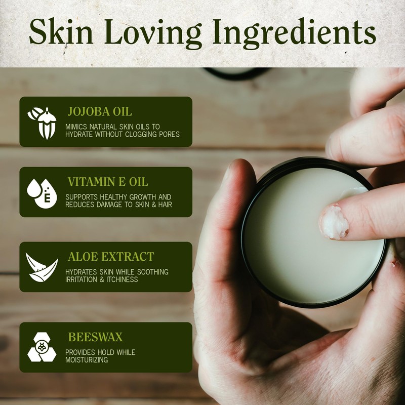 - NATURAL INGREDIENTS: This all natural beard balm is made with fractionated coconut oil, sweet almond oil, argan oil, jojoba oil, beeswax, aloe extract, and vitamin E for deep hydration and conditioning, keeping your beard soft and healthy.