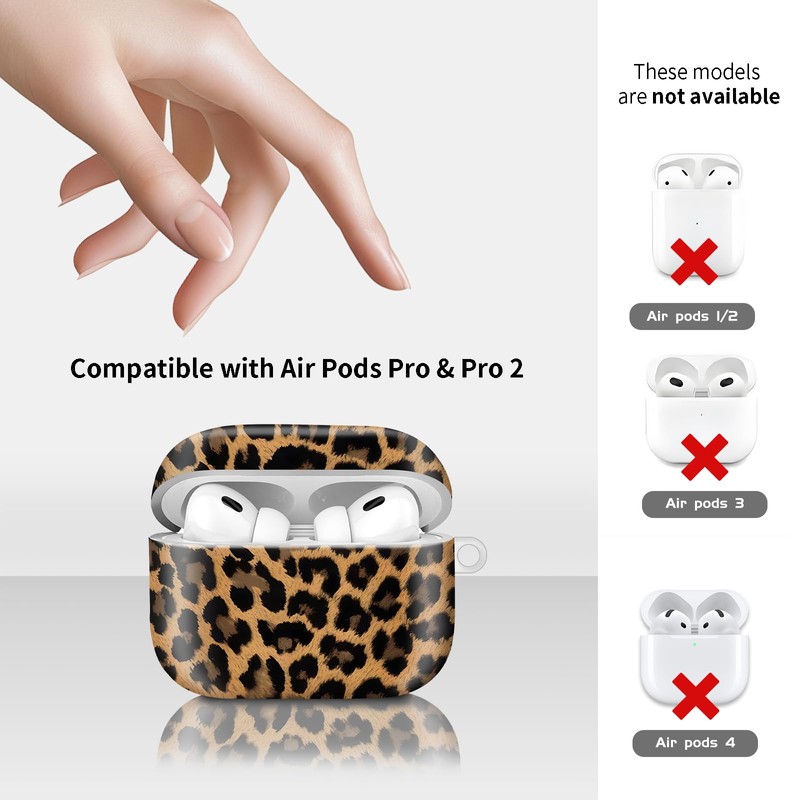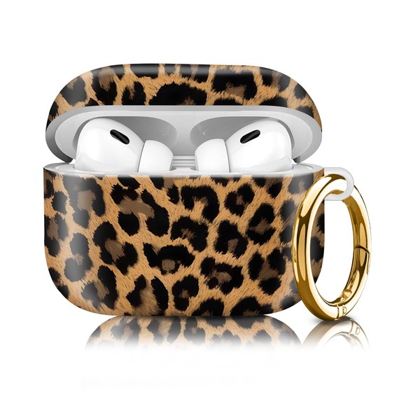 Compatiable with AirPod Pro 2nd/1st Generation Case,Lightweight & Durable Resistant Hard Case with Keychain,Stylish Design AirPod Case Cover for Women (Leopard Print Leather)