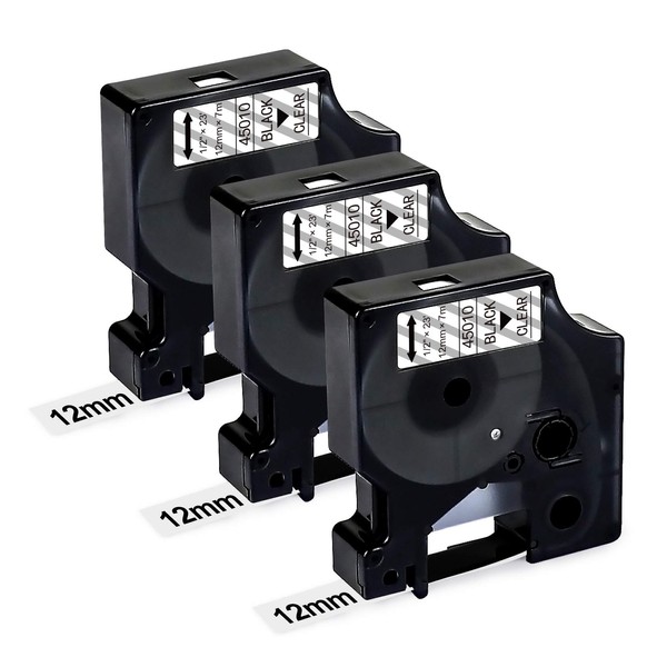 - ⭐【Basic Specs】 - 3 Packs Compatible Refills for Dymo d1 45013 S0720530 label maker tape. Color:Black Print on Clear. Size per tape: Width: 1/2 inch (12mm) Length: 23 feet (7m).
