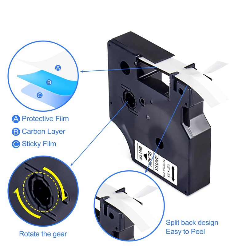 - ⭐【Applicable Model】 - Refills for Dymo d1 label maker : LabelManager 160, 150, 280, LM120P, LM210D, LM220P, LM260P, LM360D, LM420P, LM450, LM450D, LM500ts, pc II, Plug N Play, Labelpoint and LabelWriter Series labeler using dymo 45010 transparent tape.