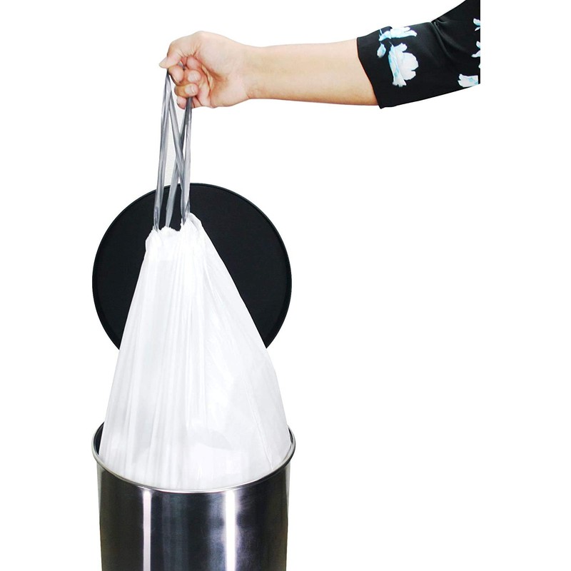 - Drawstrings made for easy lifting and handling with a thick band to reinforce trash bags in the can