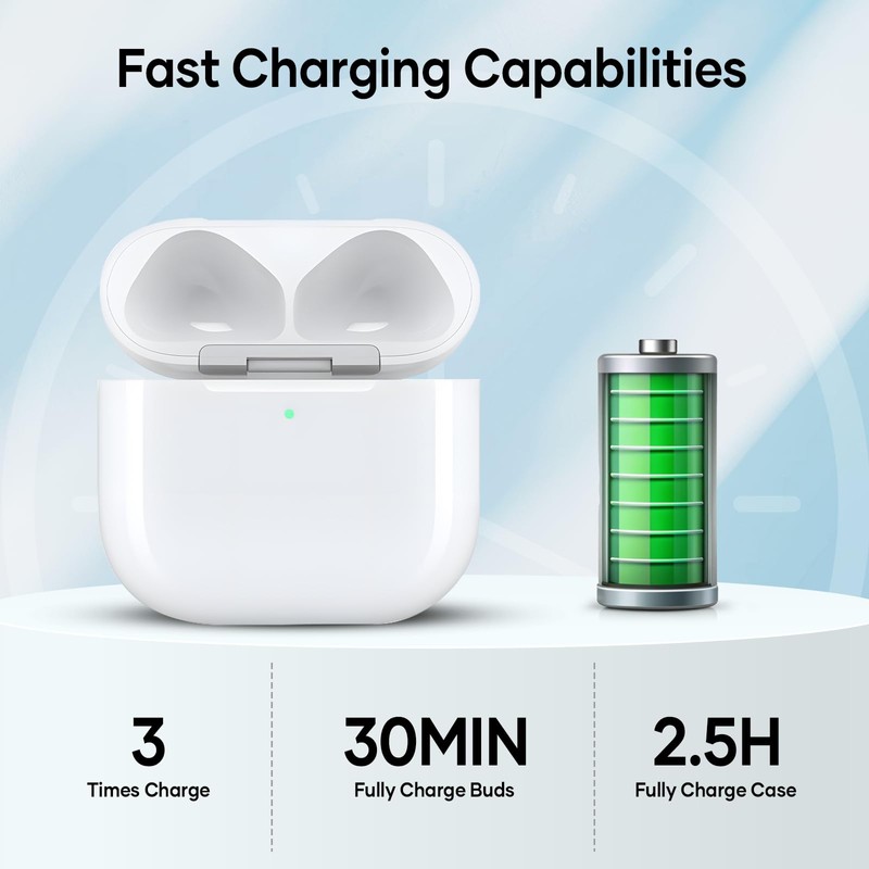 - 【5 Times Full Charge】:Build-in 680mAh batteries provide 5 times full charges for your AirPods 4th. Fast charge earbuds, just 15 minutes in the case and provide you with 3 hours of listening time. Replacement AirPods 4 Charging Case