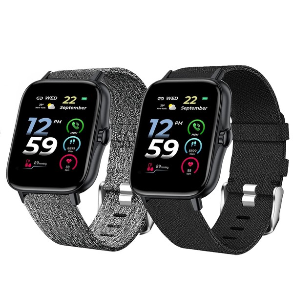 Compatible for EGQINR Smartwatch Band, Sahouden Nylon Woven Fabric Replacement Accessory Strap Compatible for EGQINR T42 Smart Watch 1.7" (Black+Gray)