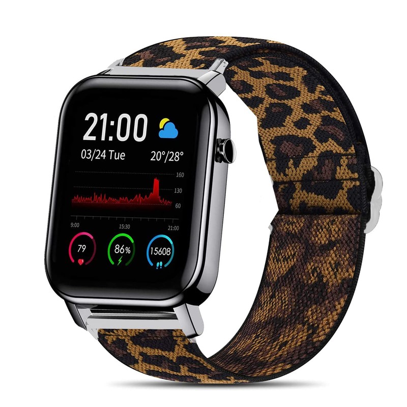 Compatible for IFOLO Smartwatch Bands, Sahouden Stretch Elastics Nylon Adjustable Replacement Strap Compatible with IFOLO 1.4" Smartwatch and IFOLO 1.69" Smartwatch (Leopard)