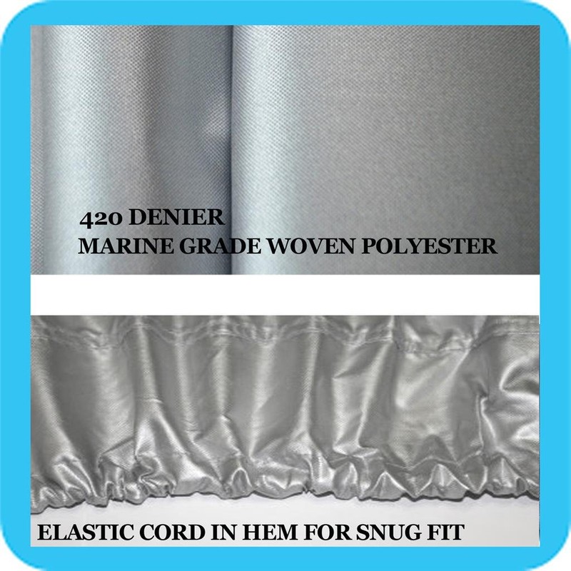 - 420 Denier Woven Marine-Grade Polyester Canvas Material is lightweight, durable and strong. Urethane treatment on the cover for resistance against Sun and weather. Water resistant so water rolls off, yet breathable to prevent build-up. Smart design with reflective Silver Gray color.