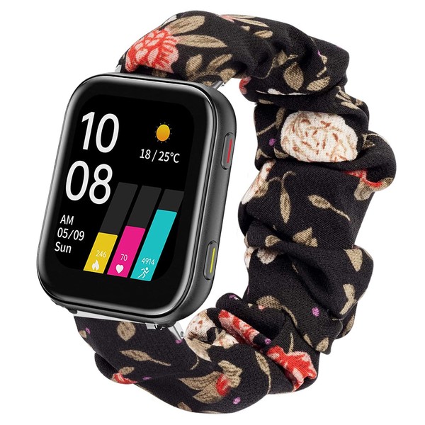 Compatible for UMIDIGI Uwatch 5 Bands, Giaogor Fabric Elastic Scrunchie Elastic Watch Band Women Cute Replacement Straps for UMIDIGI Smart Watch Uwatch 5 Fitness Tracker 1.7" (Black Flower)