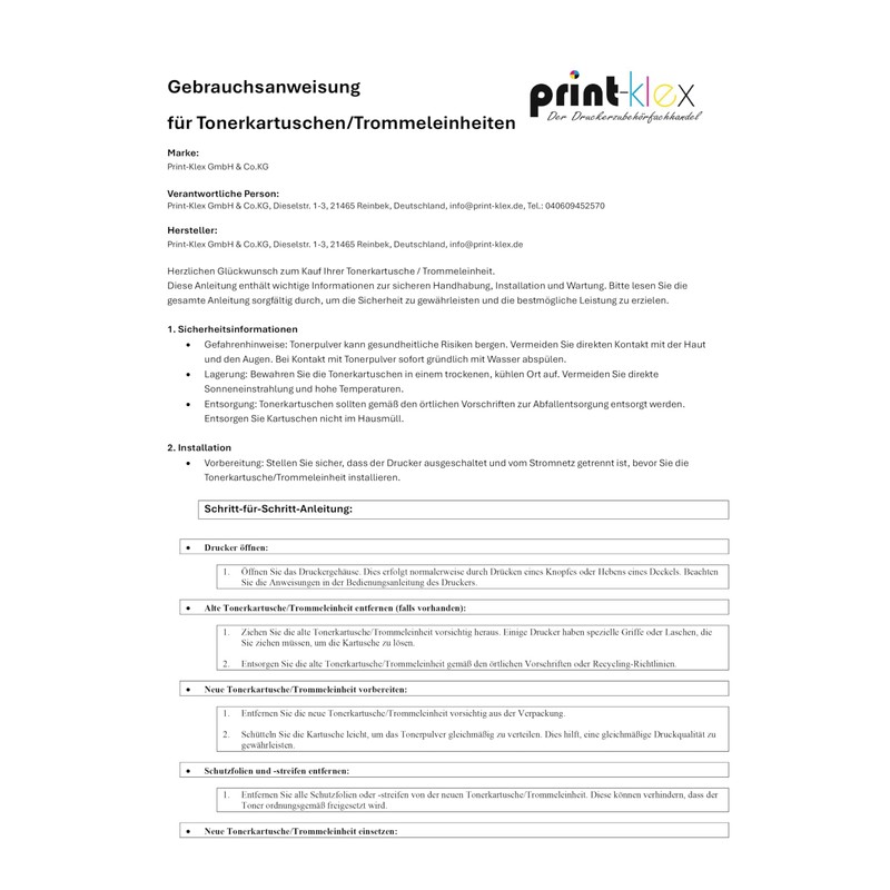 | Manufacturer: | Print-Klex GmbH & Co.KG, kein Kyocera Original |