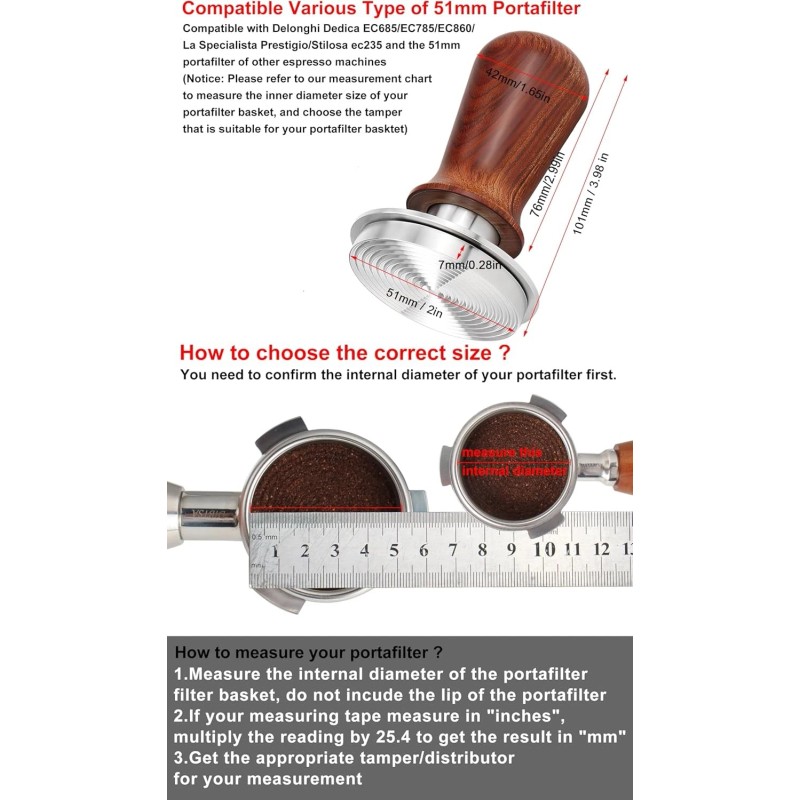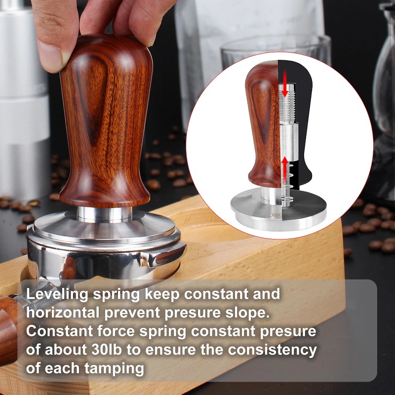 Compatible Most 51mm Coffee Tamper Espresso Hammer Leveler Tool Spring Loaded Ripple Base Steel