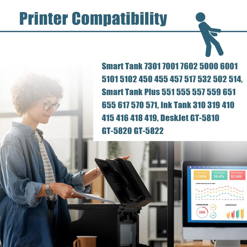 - Compatible with Printers: For HP Smart Tank Plus 551 555 557 651; Smart Tank 5101 7301 7602 7001 7002 6001 5000 5102 All-in-One Printer.