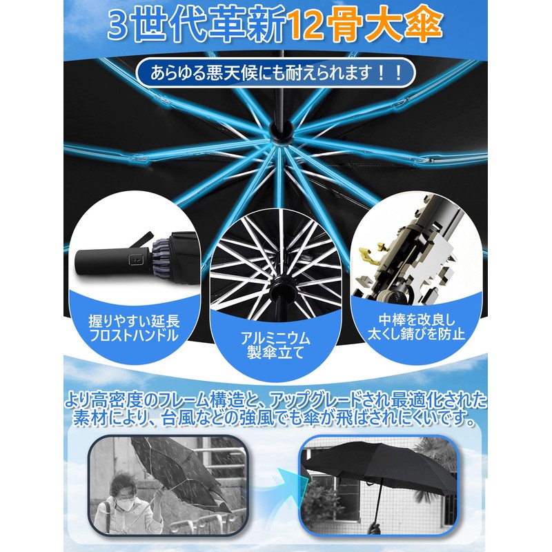 (Compatible with 2024 Typhoons), Men's Umbrella, 43.3 inches (110 cm), Extra Large Size, 12 Ribs, UPF50+, Rainy Season Protection, One-Touch, Automatic Opening/Closing, Large, Reverse Foldable, For
