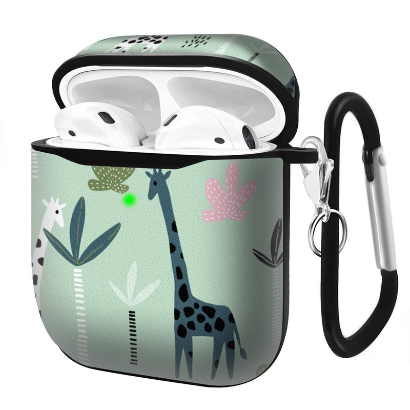 Compatible with AirPods 2nd 1st Generation Charging Case,Soft Leather Printing Case Shock-Absorbing Protective Cover (Cute Pattern with Cartoon Giraffe)