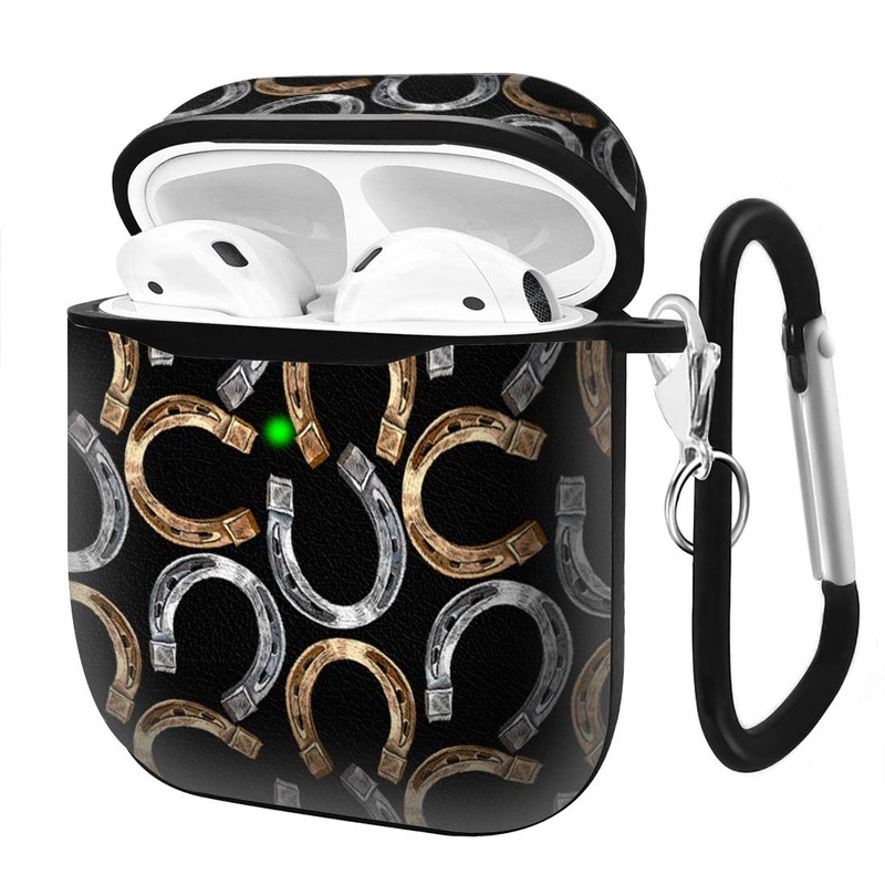Compatible with AirPods 2nd 1st Generation Charging Case,Soft Leather Printing Case Shock-Absorbing Protective Cover with Keychain (Horseshoe Pattern)