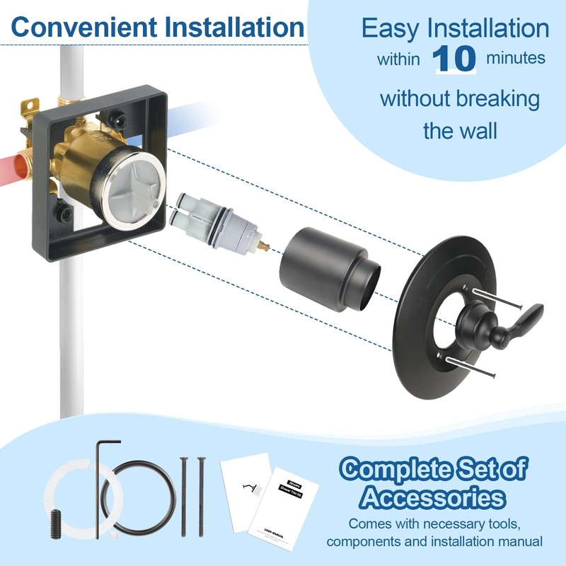- Easy to Install: The shower kit contains the necessary tools for installation. Whether you're a professional or a novice, following the included installation instructions allows for easy installation within 15 minutes without breaking the wall.