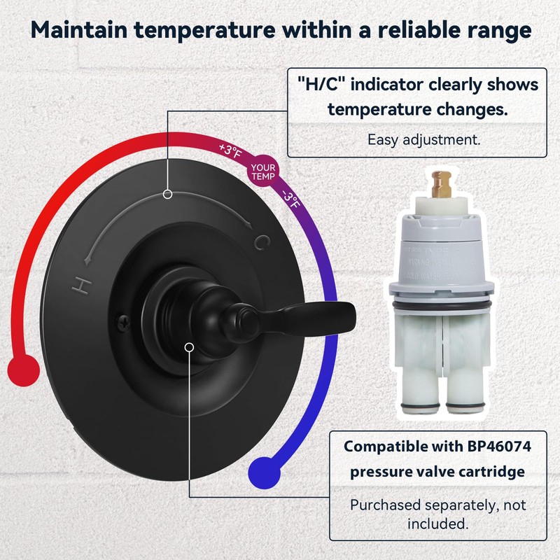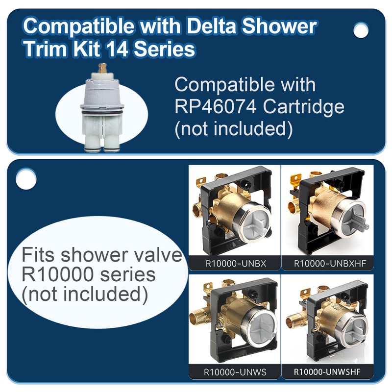 - Only Compatible with Delta: Our shower trim kit is compatible with Delta shower valve R10000 Series and RP46074 Cartridge (Valve/Cartridge Not Included). Its design has precise measurements, with fittings seamlessly matching the valve’s dimensions.