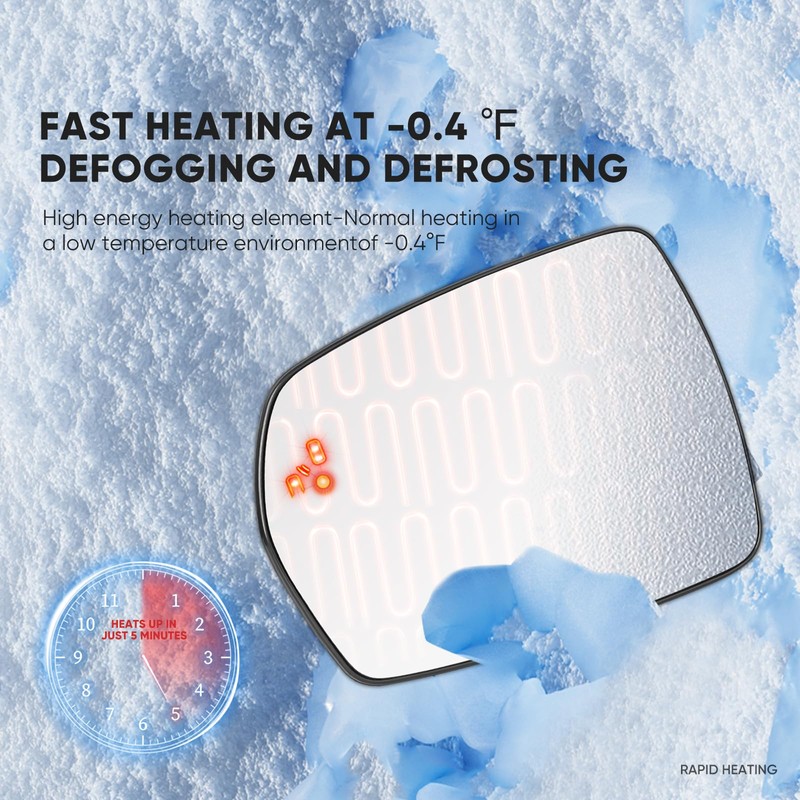 Excellent quality: We have conducted freezing and underwater tests. Normal heating after freezing at - 0.4°F for 24 hours. Power Heated can be activated normally when the mirror is immersed in water.