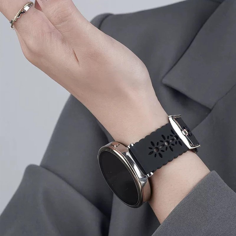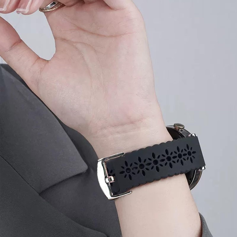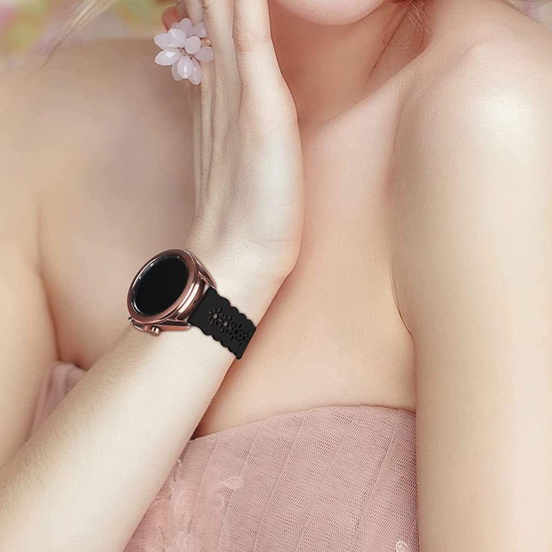 - 【Newest Design!Patents Product】Lamshaw slim lace silicone band with stylish narrow thin design, elegant hollowed out flower-lace shaped makes your watch band more thinner, lighter and less bulky.The watch band adopted metal classic clasp, it is more security and stable.