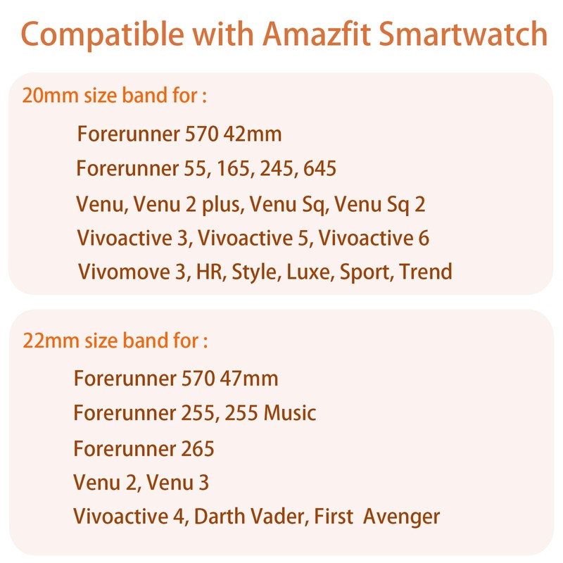 - 20mm size Band for : Gar@min Forerunner 570 42mm, Forerunner 55, 165, 245, 645