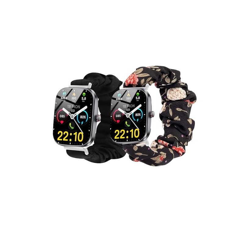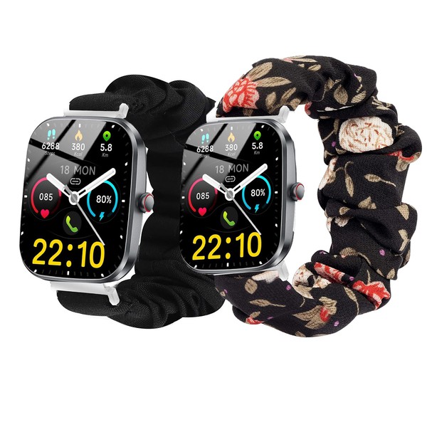 Compatible with Kuizil Smart Watch Band, Fabric Elastic Scrunchie Elastic Watch Band Women Cute Replacement Straps Compatible for Kuizil T70 1.91" Smartwatch (for Kuizil T70, 2 Pack-Black+Black