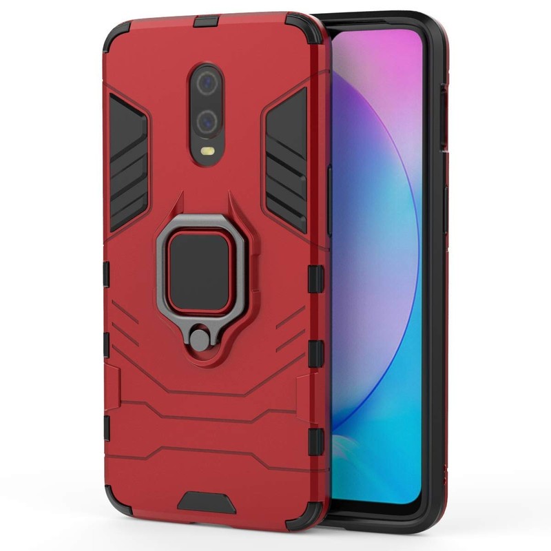 Compatible with OnePlus 7, OnePlus 6T Case, Metal Ring Grip Kickstand Shockproof Hard Bumper Shell (Works with Magnetic Car Mount) Dual Layer Rugged Cover for OnePlus7, OnePlus 6T (Red)