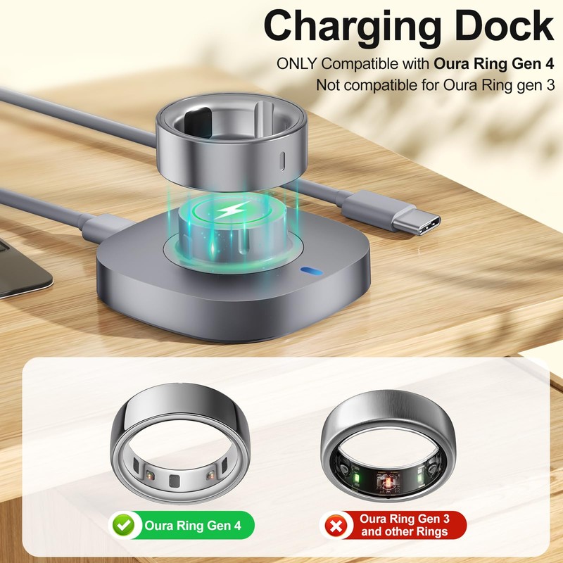 • Compatibility:The Charger ONLY compatible for Oura Ring Gen 4 -Size10 (NOT compatible with Oura Gen 3 or other rings). Each charging dock is size-specific— please verify your ring model before purchasing.