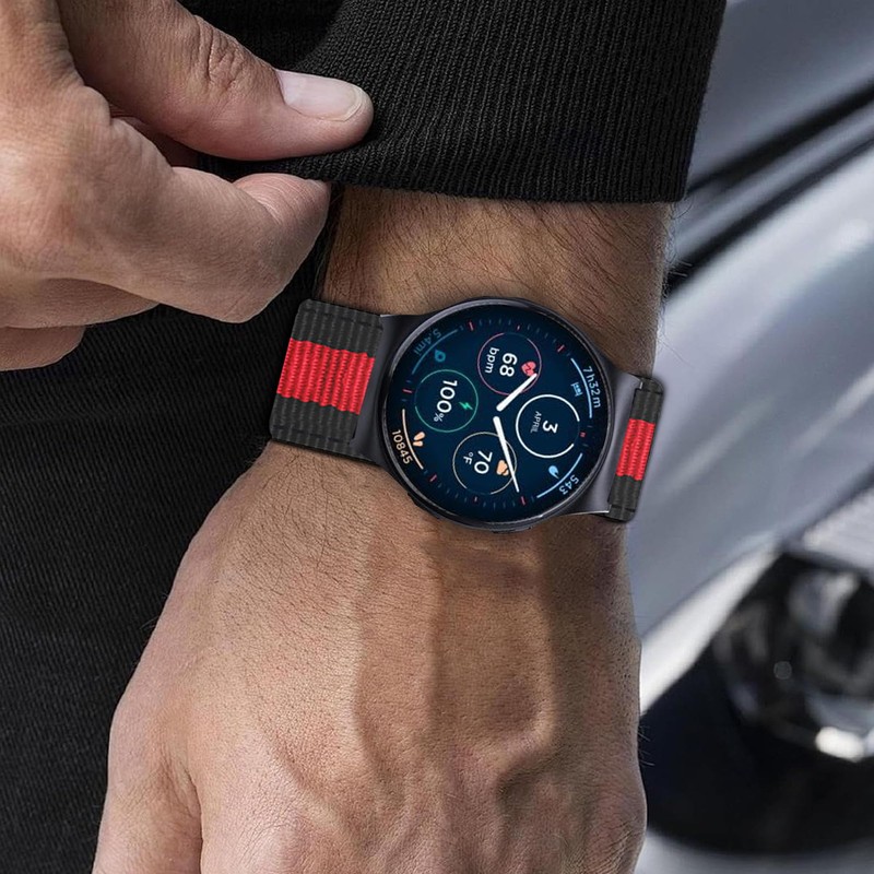Compatible with Polar Smartwatch bands, Lamshaw Quick Release 22mm, 20mm Nylon Woven Fabric Replacement Strap Compatible with Polar Unite, Ignite, Ignite 2, Ignite 3, Pacer, Vantage V3, Grit X, Grit X Pro, Grit X2 Pro, Vantage M, M2 Smartwatch (Black&Red