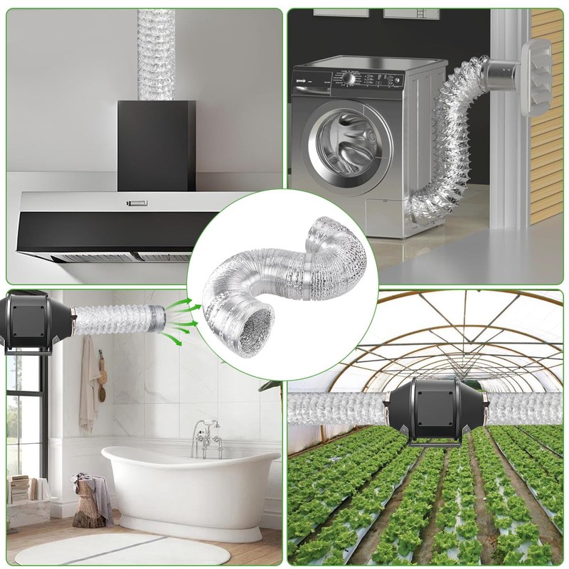 - Wide application: the aluminium vent hose is designed for HVAC ventilation applications, including dryer ventilation, growing rooms and tents. It can be used anywhere for ventilation, heating and cooling where it is needed: kitchens, greenhouses, shower rooms, attics, garages, caravans etc.