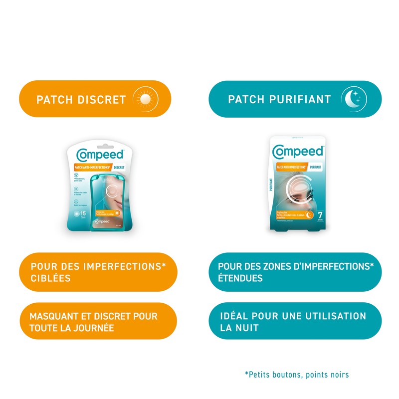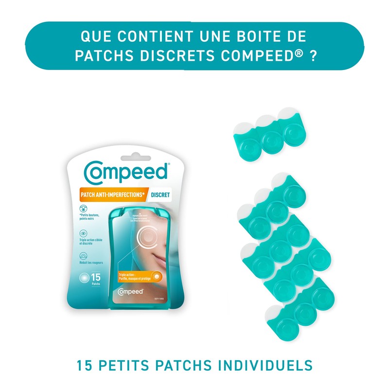 Compeed - Discreet Imperfection Patches - Hydrocolloid Patches - Ideal for Discreet Day Use - Targeted Imperfections - 15 Patches - 1.5 x 1.5cm Blackheads and Small Buttons