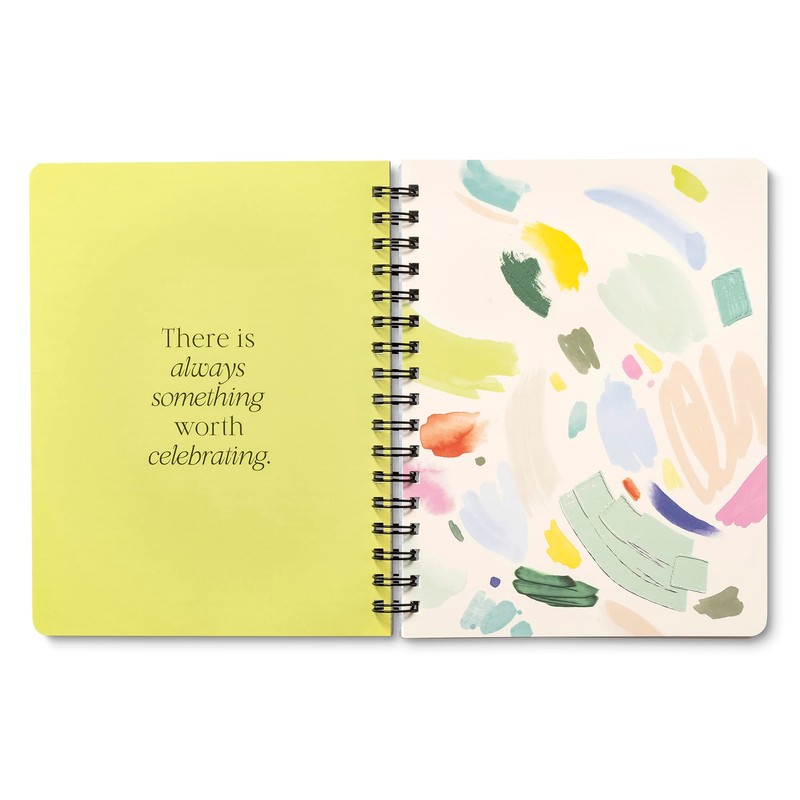 • INSPIRING COVER: This spiral journal has an artistic cover featuring a foil-stamped statement that says, Something Good Is Going to Happen Today.