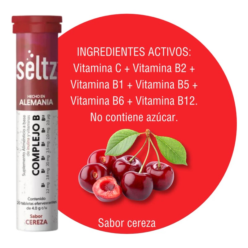 Complejo B Sabor Cereza Seltz 20 Tabletas Efervescentes 2pzs