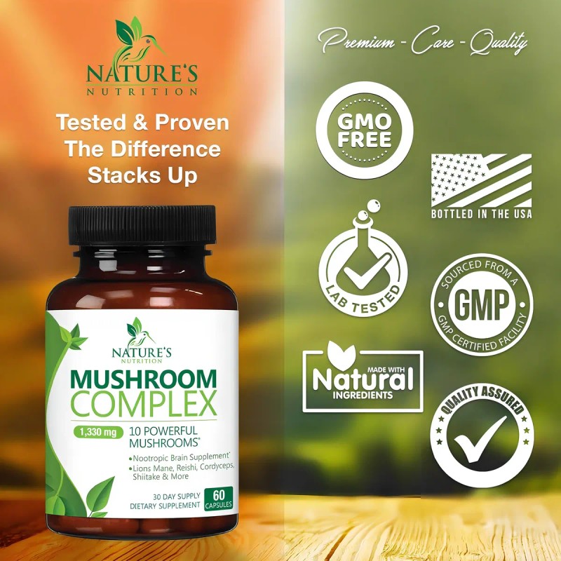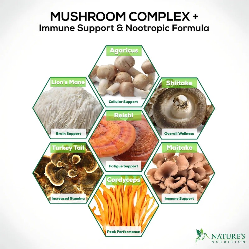 🌿 Ingredientes Naturales: Elaborado con hongos de origen mundial, vegano y vegetariano.
