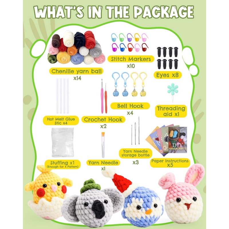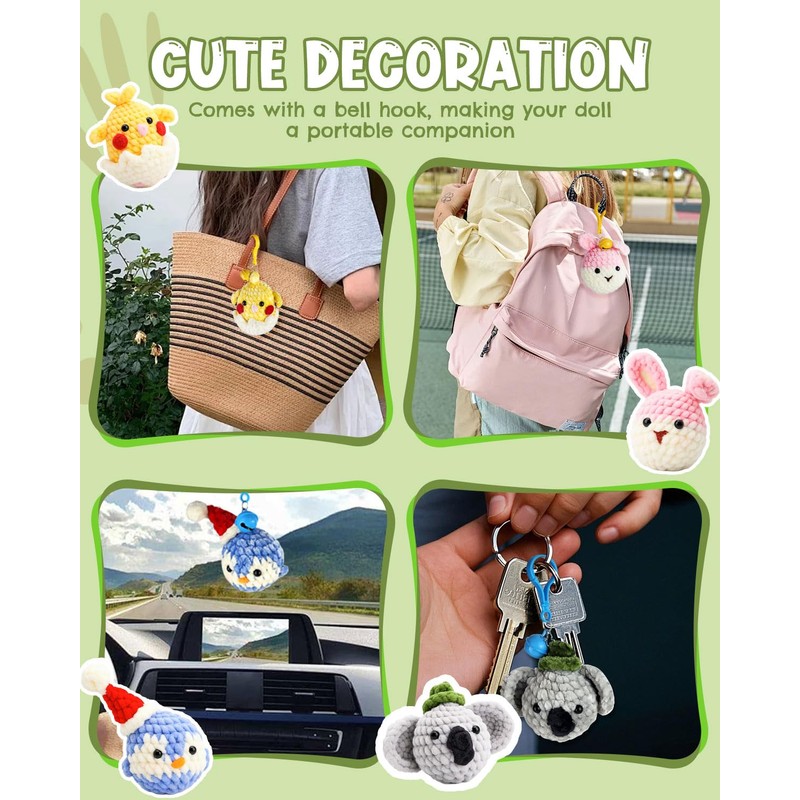 - Adorable DIY Crochet Gift Set: Bring your own crochet animals to life with this all-in-one DIY kit! You’ll have everything you need to make a Chick, Bunny, Penguin, and Elephant—each full of charm and personality. These handmade cuties are perfect for brightening up your home, office, or car, and they also make great gifts. With included keychain attachments, you can carry your creations on your bag or keys for a fun and stylish touch wherever you go