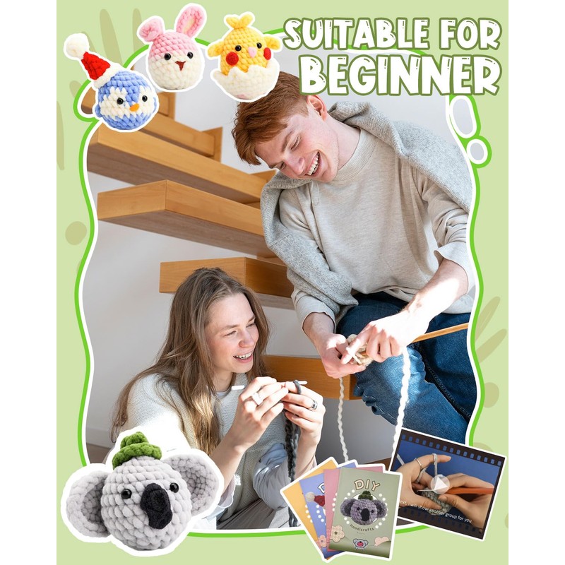 - Complete Crochet Kit for Beginners: Kickstart your crochet journey with this all-in-one kit—perfect for absolute beginners! It includes everything you need to get started, with no extra tools or supplies required. Inside, you’ll find soft beginner-friendly yarn, a comfortable ergonomic crochet hook, stitch markers, safety eyes, and more. We’ve also included clear printed instructions and step-by-step video tutorials to guide you from your first stitch all the way to more advanced techniques
