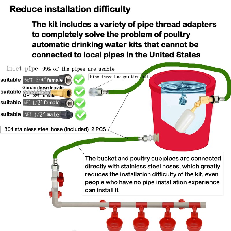 Complete Set Pipeline Automatic Chicken Waterer System,1/2" PVC Pipe Accessories DIY Kit with 2 Hose,Chicken Water Cup,Chicken Waters,Poultry Waterer,Duck Water Feeder for Quail Chicken Duck Goose