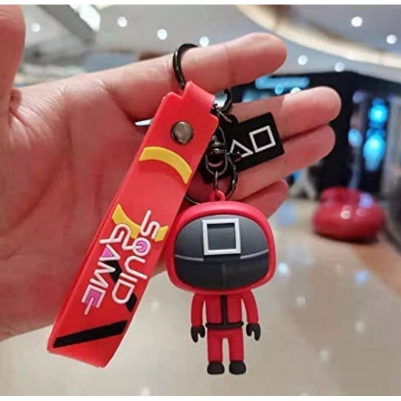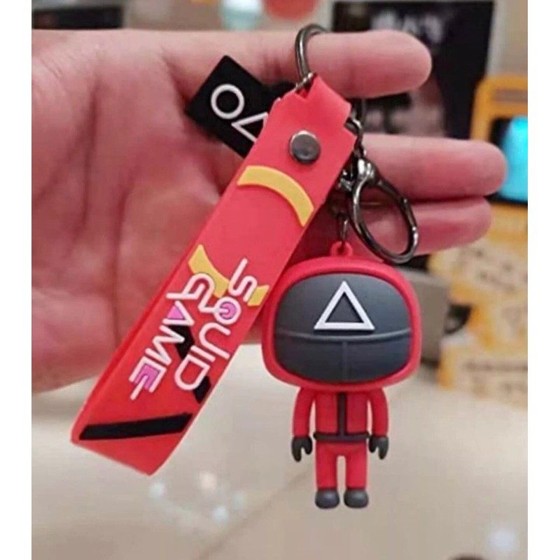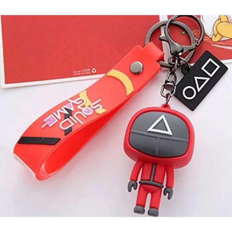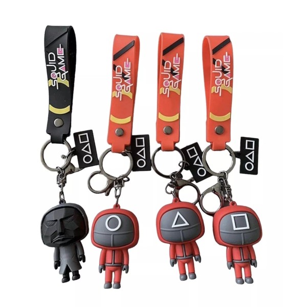 Complete set of 4 Squid games masked man Square, Circle,Triangle, Frontman guards soldier keychain accessory. High quality squid game key chain pendant accessory for your keys, backpack, purse, bags. Made from acrylic materials and high quality hardware. Individually package for each characters to share with your friends or as gifts.