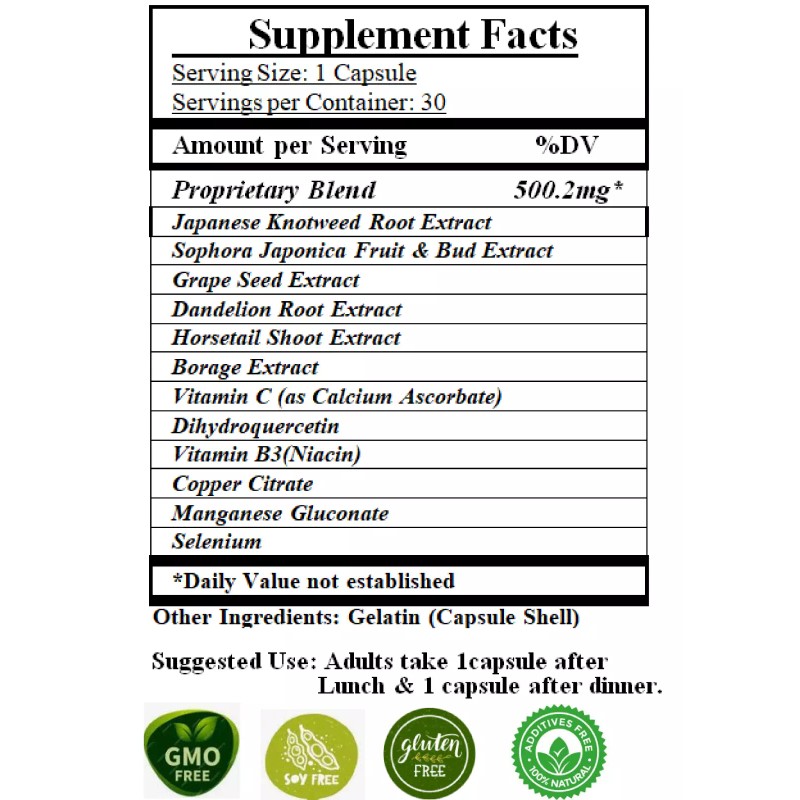 - Potent Antioxidant: Resveratrol & Dihydroquercetin are Powerful Antioxidants. They help protect your body from harmful effects of free radicals and support healthy aging. Rutin from our Sophora Japonica extract is also a powerful combatant of free radicals.