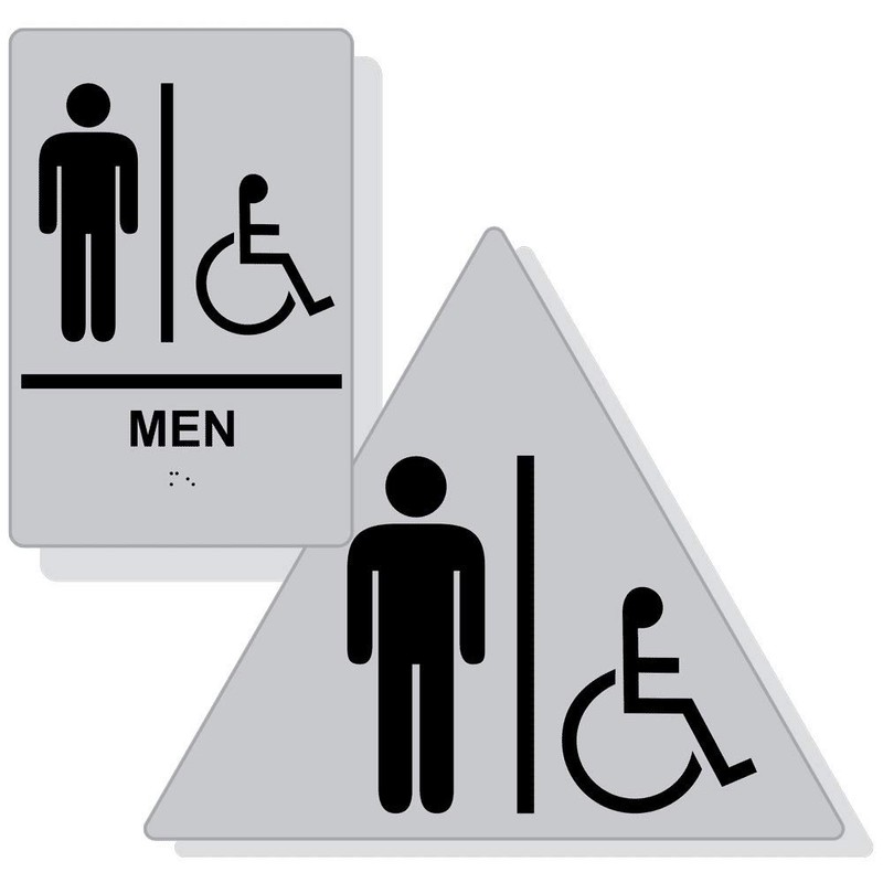 ComplianceSigns.com Accessible Men's Restroom Sign Set for Wall/Door, ADA-Compliant Braille with Symbol, Black on Silver Acrylic