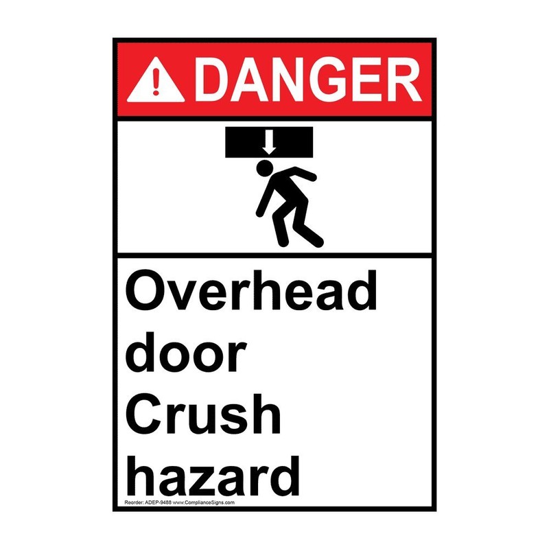ComplianceSigns.com Danger Overhead Door Crush Hazard ANSI Safety Sign, 10x7 in. Plastic for Machinery Industrial Notices