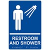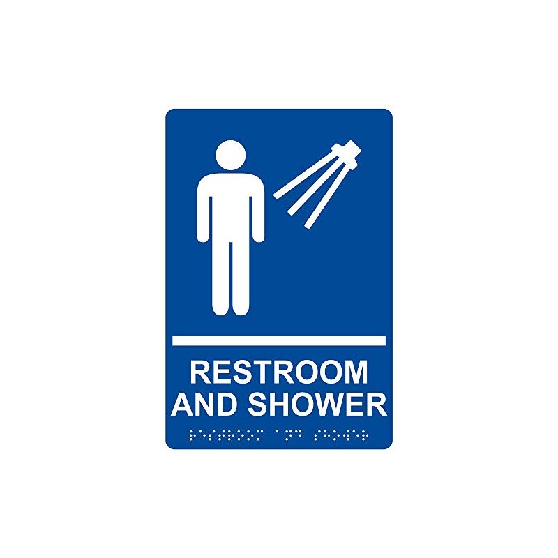 ComplianceSigns.com Restroom Sign, ADA-Compliant Braille and Raised Letters, 9x6 in. White on Blue Acrylic with Adhesive Mounting Strips