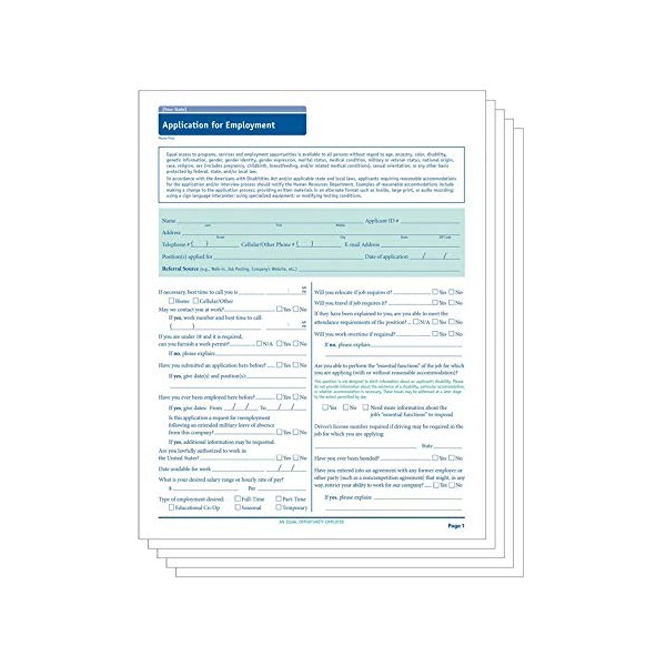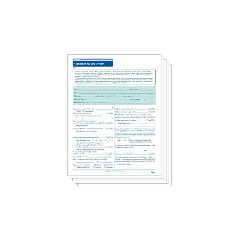 - EMPLOYEE MANAGEMENT: State-Compliant Job Applications streamline the hiring process by covering all the essentials, such as expanded areas for education, employment history, special accomplishments and contact information.