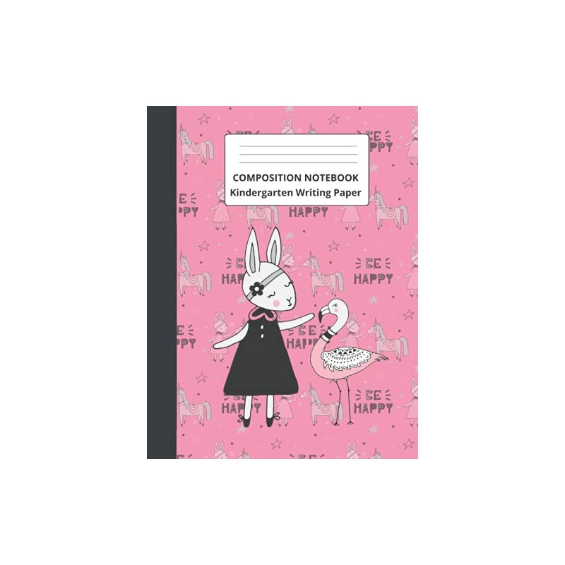 Composition Notebook Kindergarten writing paper: Unicorn pink cute cover Trace the letters and practice handwriting with dotted midline line for Pre-K through to third grade when they progress to wide ruled line and cursive. (7.44 x 9.69)